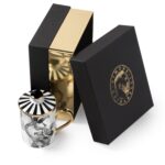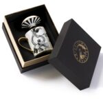 Mug in porcellana con coperchio rifinita a mano con filo in vero oro.