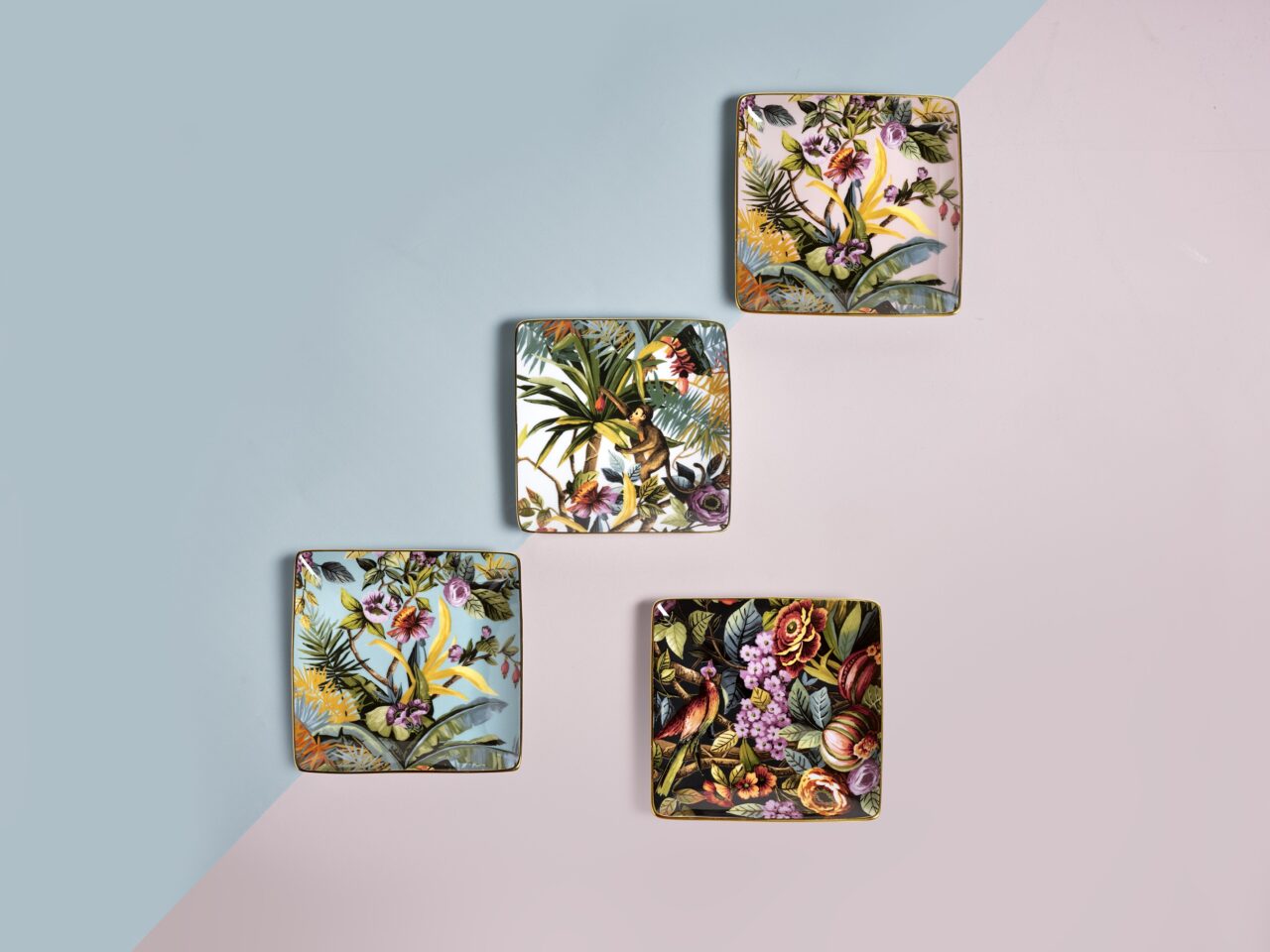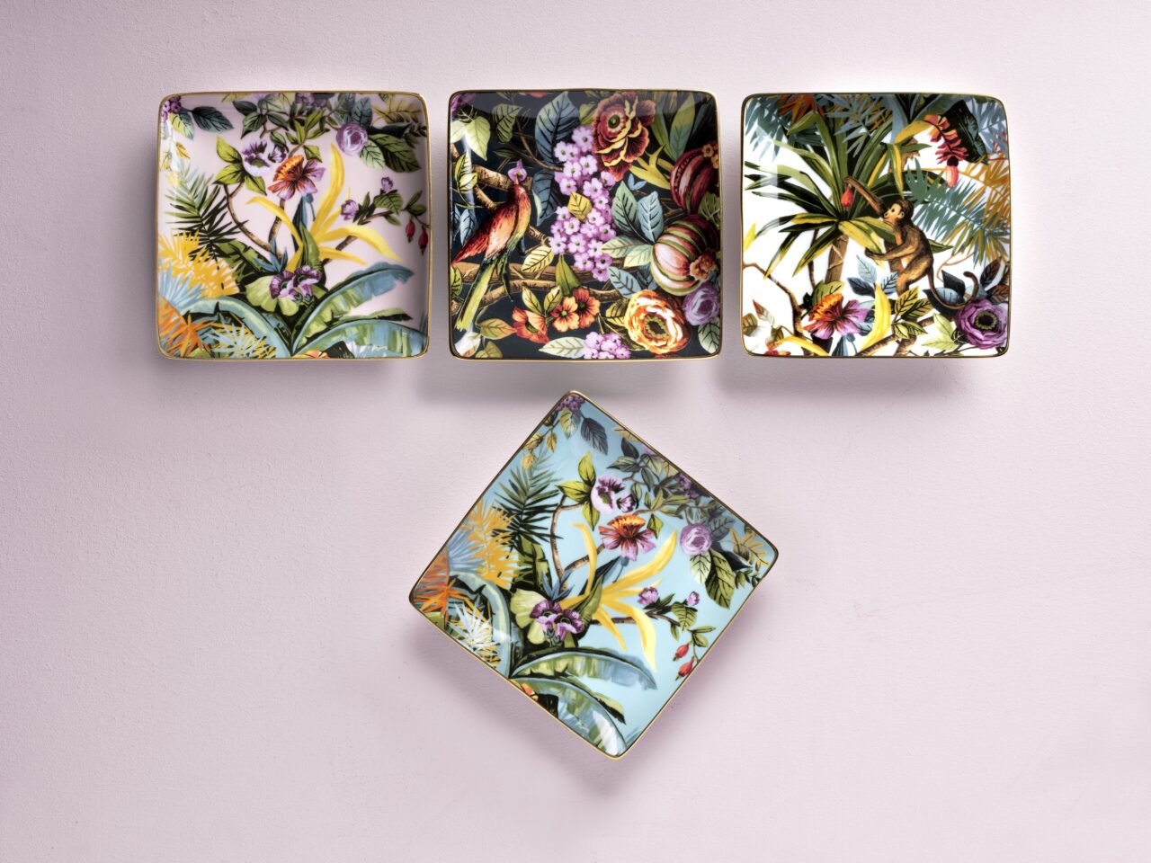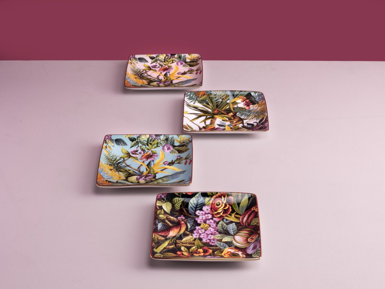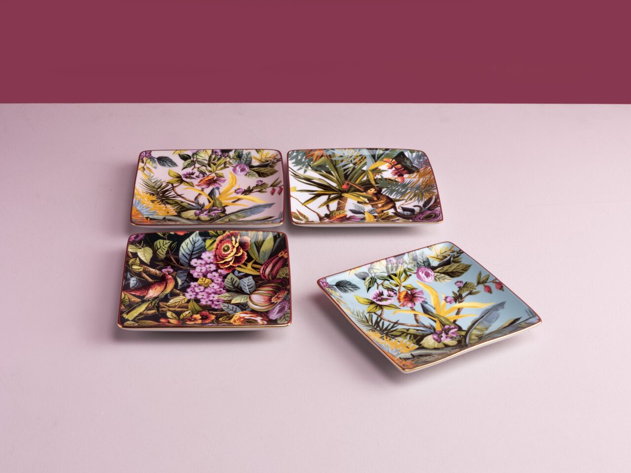 Square porcelain empty pocket, hand- finished with real gold thread .