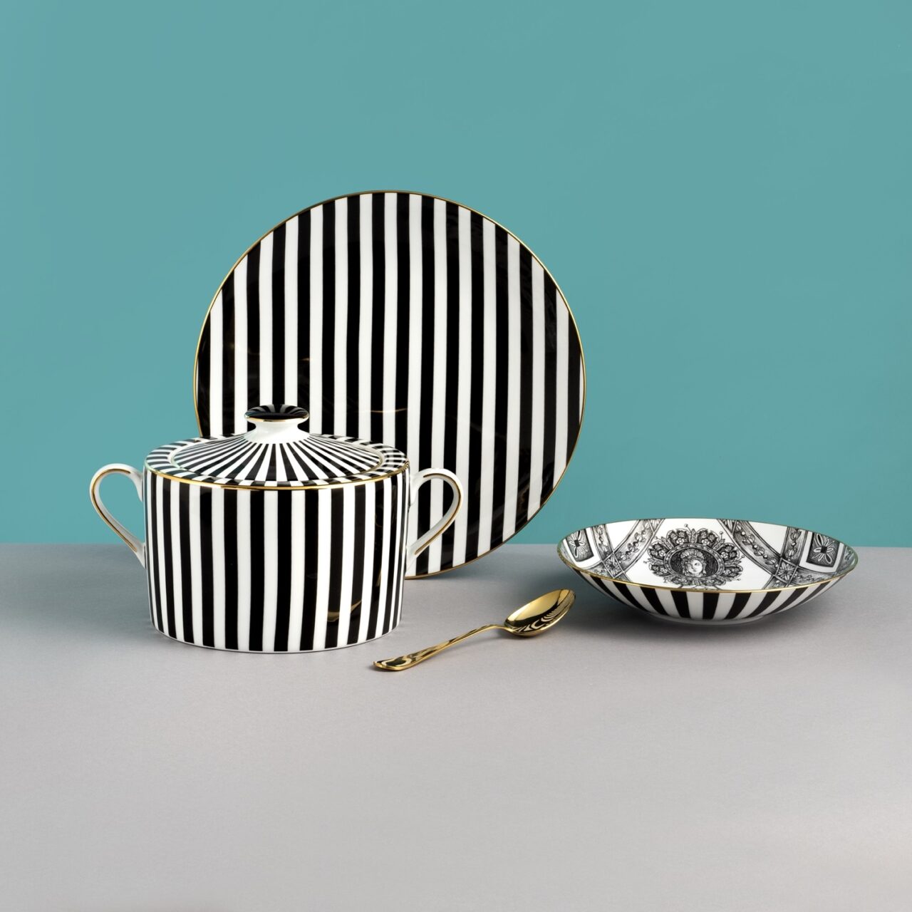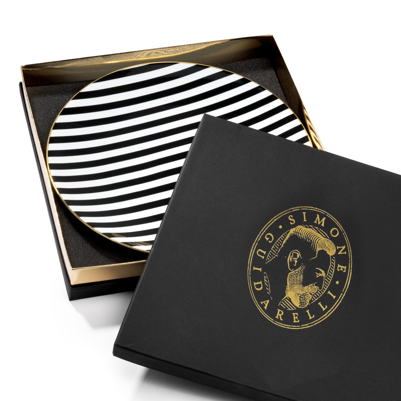 Finished with a hand-applied 12 kt real gold trim.