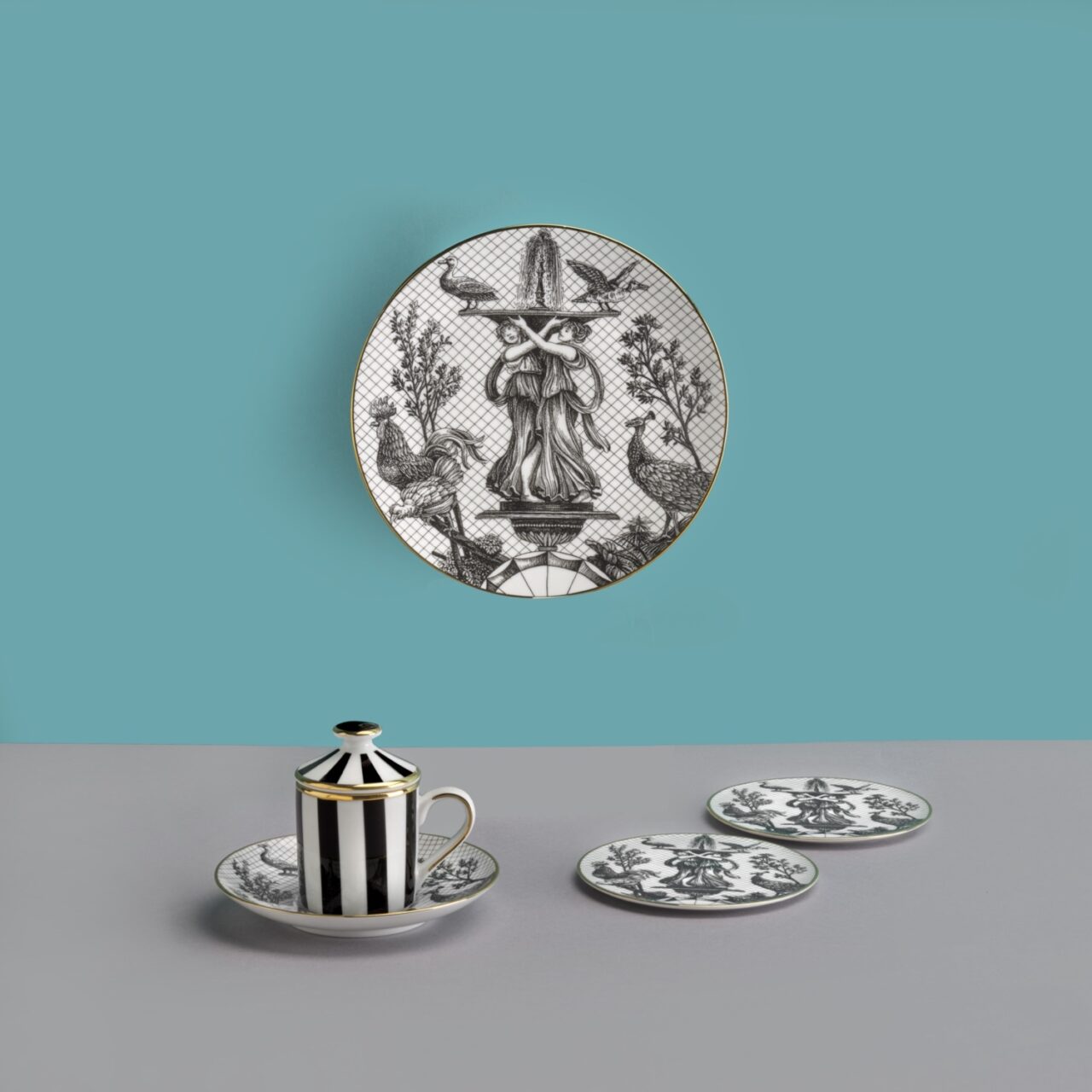Finished with hand-applied 12 kt real gold trim.