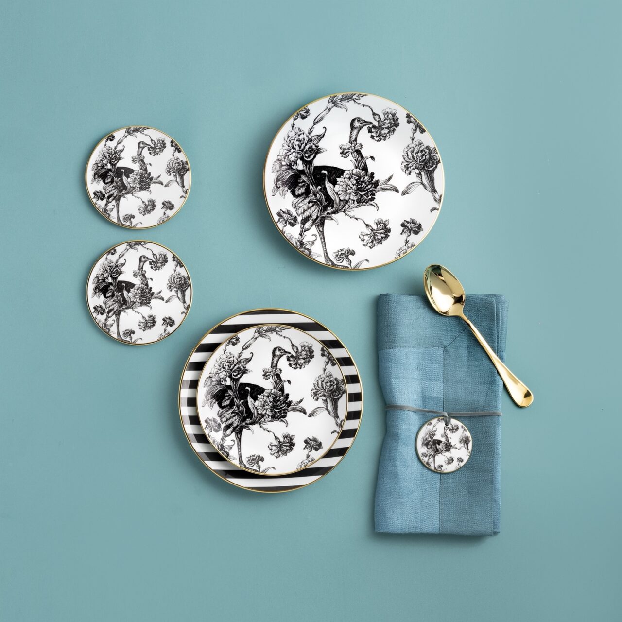 Finished with hand-applied 12 kt real gold trim.