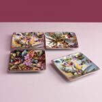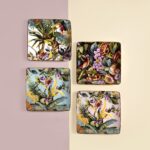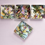 Svuotatasche quadrato in porcellana rifinito a mano con filo in vero oro.