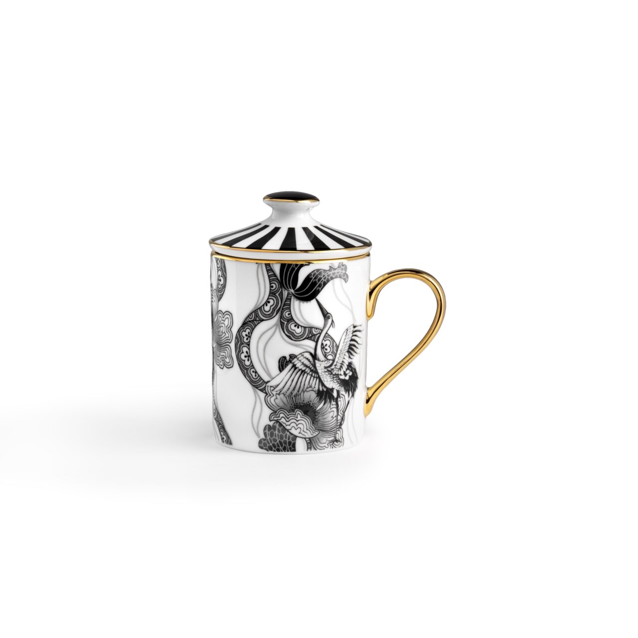 Mug in porcellana con coperchio rifinita a mano con filo in vero oro.