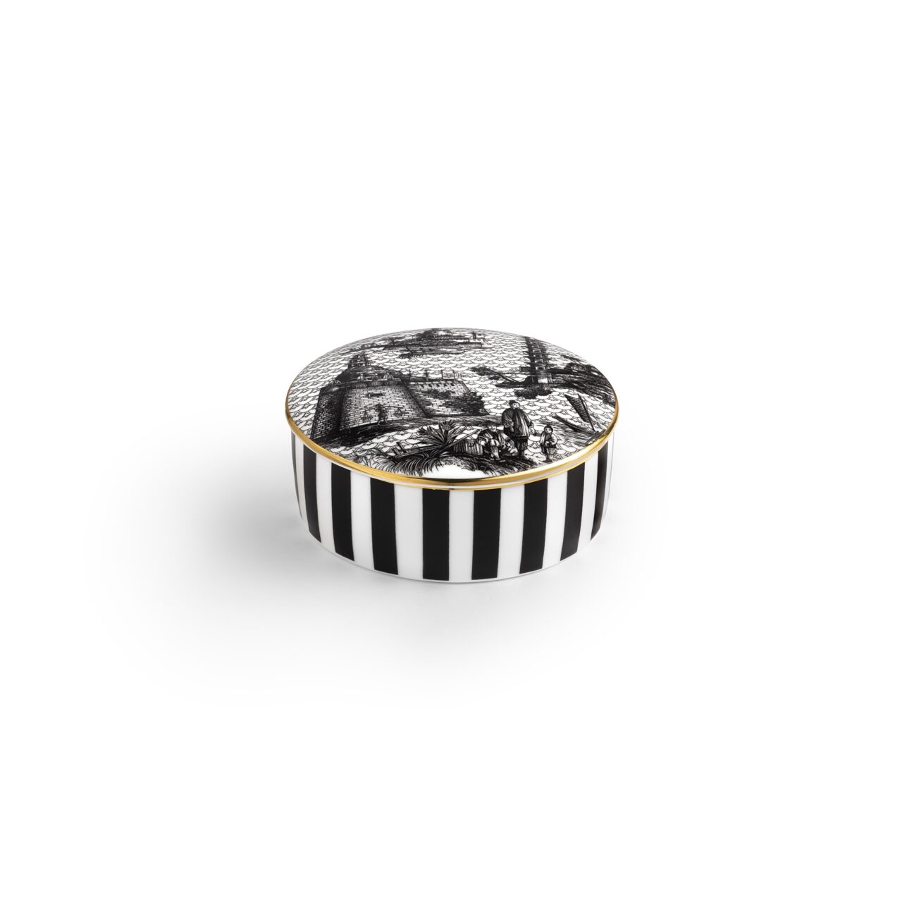 Portagioie in porcellana con coperchio rifinito a mano con filo in vero oro.