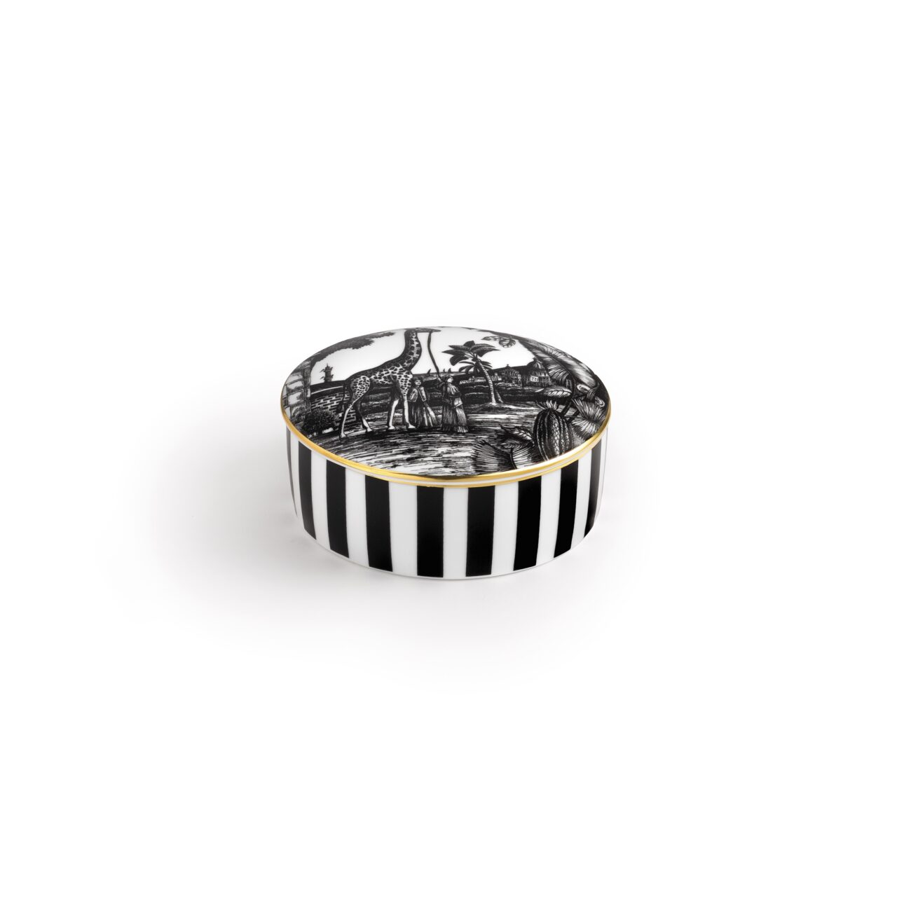 Portagioie in porcellana con coperchio rifinito a mano con filo in vero oro.